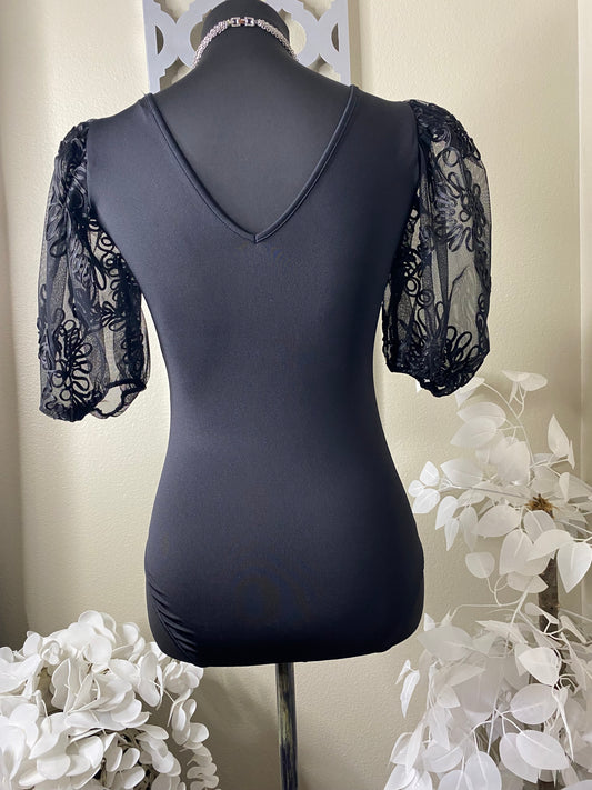 Black Beauty Tulle/Embroidered Puff Sleeve Bodysuit