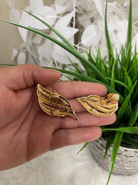 90’s Vintage Gold Tone Angels Wing Clip On Earrings