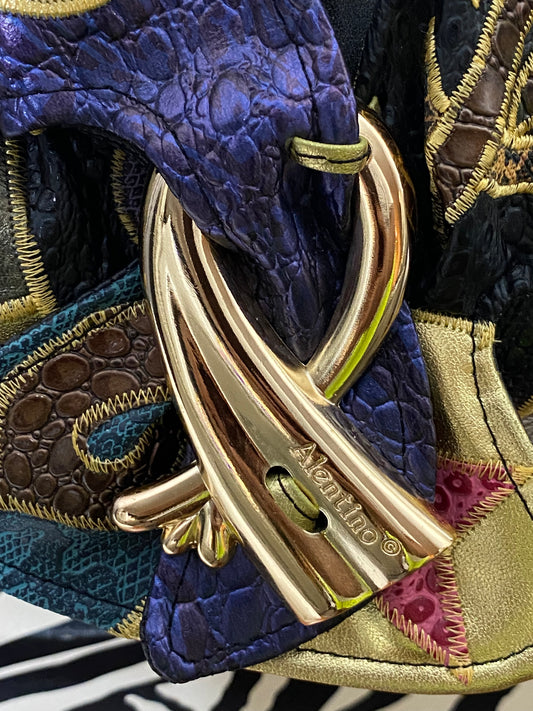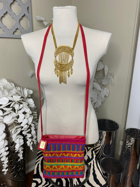Vintage Red Multi Color Stripe V Snake Skin Crossbody Bag