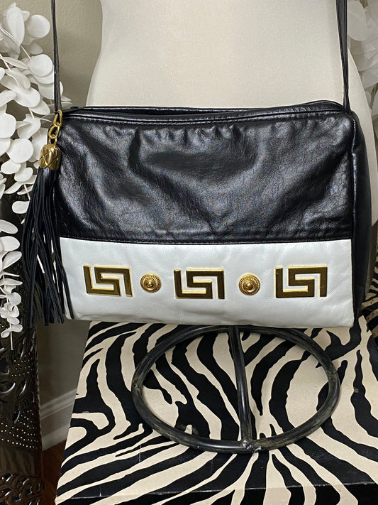 Vintage P A R K Bronze Genuine Leather Greek Key Aztec Purse