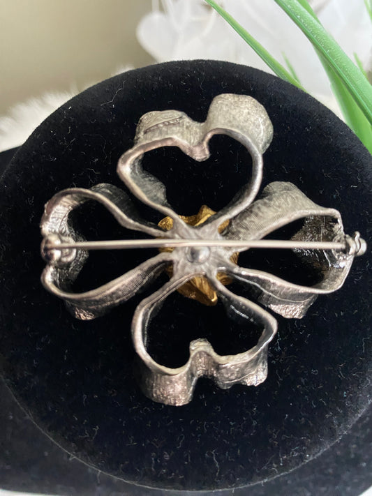 Vintage Designer Silver and Gold Mix Metal Flower Brooch Pin