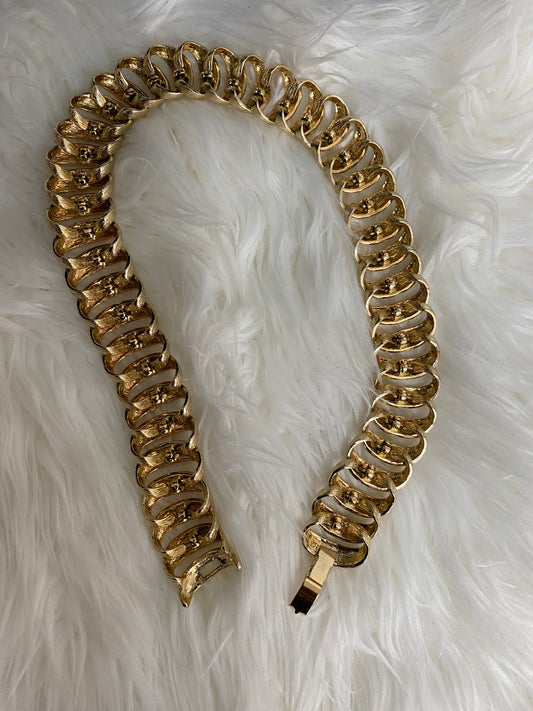 Vintage Textured Gold Tone Designer Choker Necklace